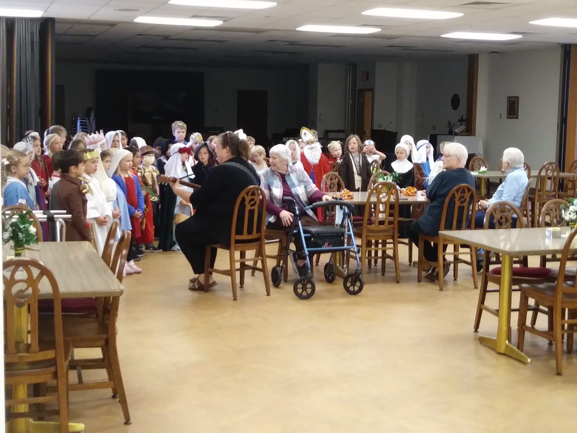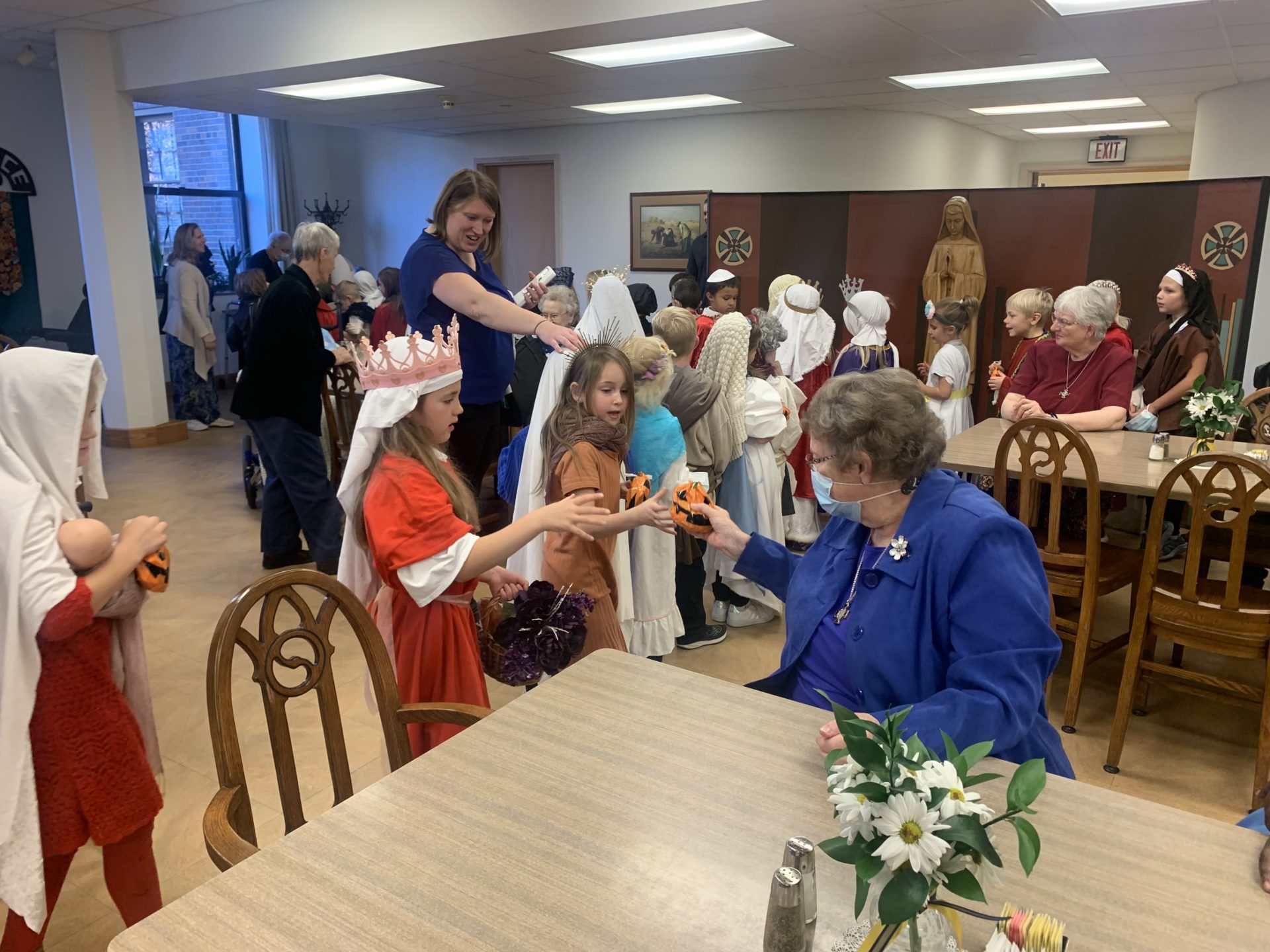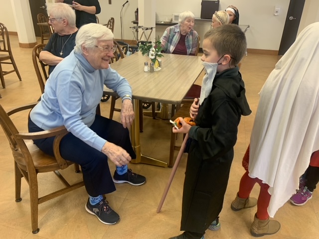 The Sisters were blessed by Saints from Stella Maris for All Saints’ Day on November 1st. More than 50 first graders came dressed as their favorite Saint, sang several songs, and visited with the Sisters. At the end, the Sisters thanked them with treats and applause. What a wonderful morning!